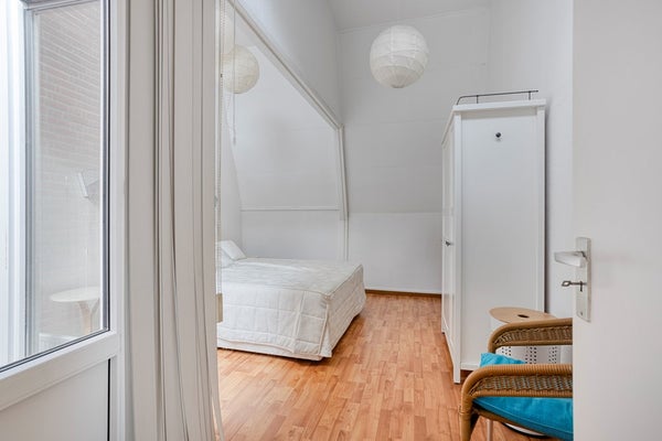 De grootste kamer (18m²) ligt aan de voorzijde en is voorzien van een laminaatvloer en twee Velux dakramen met isolerende beglazing en sreens. Deze dakramen zorgen voor veel daglicht en ventilatie. Daarnaast is er een grote vaste kastenwand, ideaal voor al je kleding en overige spullen.