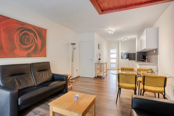 De open keuken (12 m²), in 2021 volledig vernieuwd en uitgevoerd in een praktische hoekopstelling, is van alle gemakken voorzien. Zo vind je er onder andere een vaatwasser, koelkast, combi-oven en een 4-pits gasfornuis met afzuigkap. Het kunststof aanrechtblad zorgt voor een stijlvolle uitstraling en is bovendien onderhoudsvriendelijk.