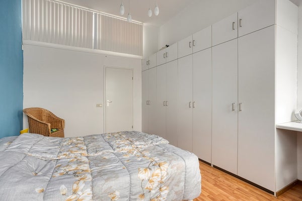 De tweede slaapkamer (15m²) ligt aan de achterzijde, is eveneens voorzien van een laminaatvloer en is extra ruim door het dichtmaken van de vide. Deze kamer heeft een mooie plafondhoogte en via een openslaande deur stap je zo de patio (5m²) op. De kunststof kozijnen met isolerende HR++ beglazing zorgen voor extra comfort en isolatie.