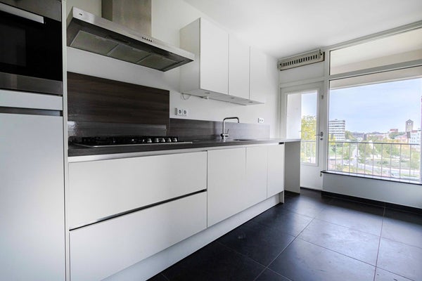- De portiekflat heeft een woonoppervlakte van 98 m² en beschikt over 4 kamers, waarvan 2 slaapkamers;