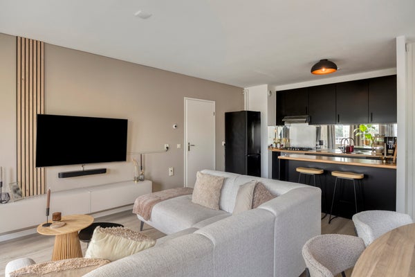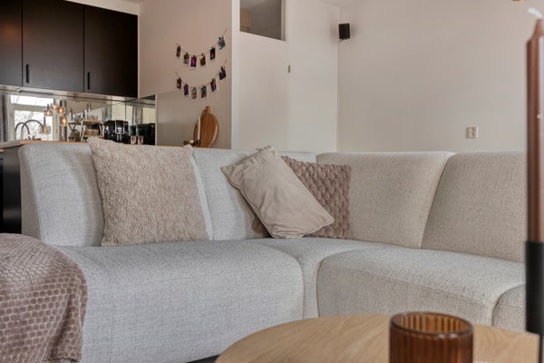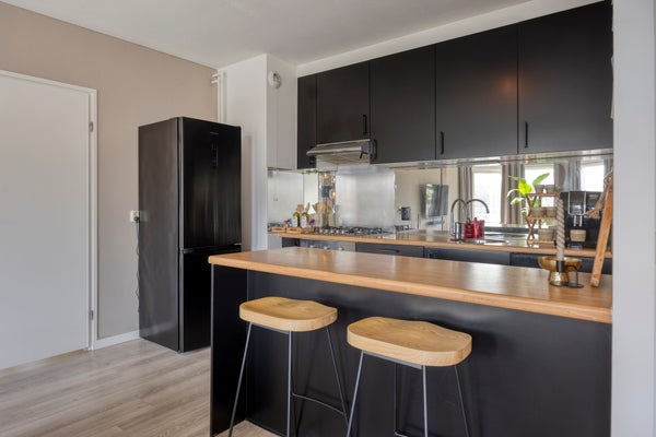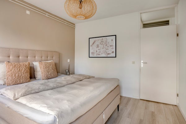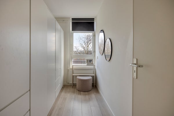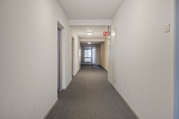 Entree/hal met garderobe en toegang tot de woonkamer. De woonkamer v.v. een erker met halfopen keuken is voorzien van een laminaatvloer. De erker zorgt voor veel lichtinval en sfeer. Vanuit de woonkamer is er toegang tot het ruime balkon, waar het heerlijk zitten is. Het balkon is gelegen op het zuidoosten waardoor je kunt genieten van de ochtend- en middagzon. Een halfopen keuken met werkblad v.v. gas kookplaat, spoelbak, oven en afzuigkap en ruimte voor een losse koelkast en/of vriezer. Heerlijk zitten aan een barretje in de keuken. Via het tussenportaal tref je twee slaapkamers, een badkamer, een apart toilet en een berging met daglicht aan. Slaapkamer 1: Deze slaapkamer is ca. 12 m² groot en is v.v. een deur die toegang biedt tot het balkon. Slaapkamer 2: Deze slaapkamer is ca. 6.5 m² groot. De betegelde badkamer is ca. 3 m² groot en voorzien van: een ruime inloopdouche, een wastafel met meubel, radiator en mechanische afzuiging. Een separaat gelegen modern toilet. De inpandige ruime berging (ca. 5m²) is voorzien van de witgoedaansluiting en biedt extra opslagmogelijkheden. De cv-ketel (eigendom) bevindt zich in een muurkast die te bereiken is via de galerij.