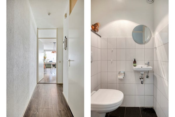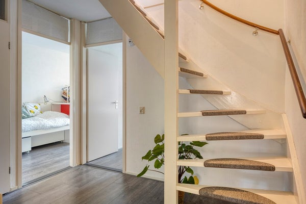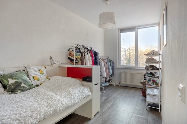 Via een trap is de tweede verdieping bereikbaar. Ruime overloop (9m²) met toiletruimte, voorzien van wandcloset en fonteintje, meterkast, berging met c.v. installatie en toegang naar de royale woonkamer. De woonkamer (38m²) is voorzien van veel lichtinval en een laminaatvloer met warme uitstraling. De open keuken is in maart 2025 vernieuwd en voorzien van de volgende (inbouw)apparatuur, te weten: spoelbak, 4-pits inductiekookplaat, combi-oven, vaatwasser, afzuigkap, koelkast en vriezer. Alle apparatuur is van het merk Miele, de combi-oven is van het merk AEG. Vanuit de woonkamer heeft men toegang tot het balkon (4m²) gelegen op het westen. Geheel betegelde badkamer (5m²) voorzien van douche, wastafel en wandradiator. In de badkamer bevindt zich de wasmachineaansluiting. Zowel slaapkamer 2 (11m²) als slaapkamer 3 (10m²) zijn ruim van formaat en beschikken over een mooie laminaatvloer.