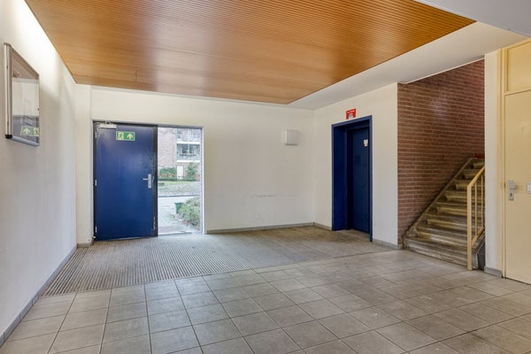Centrale hal met bellentableau en brievenbussen. Toegang tot de lift en het trappenhuis. Tevens is de inpandige berging gesitueerd op de begane grond.