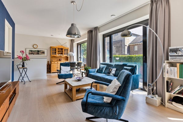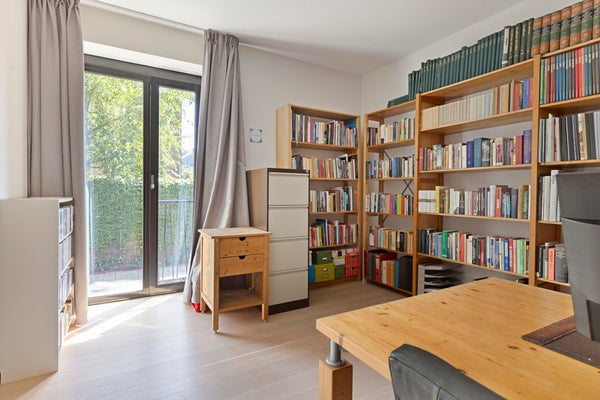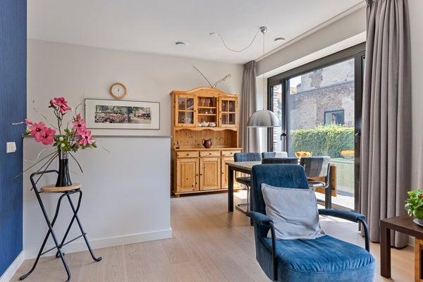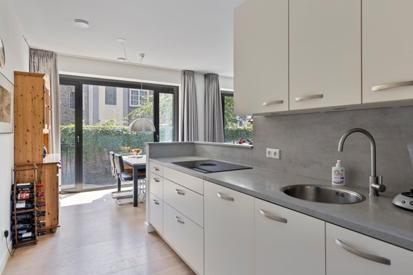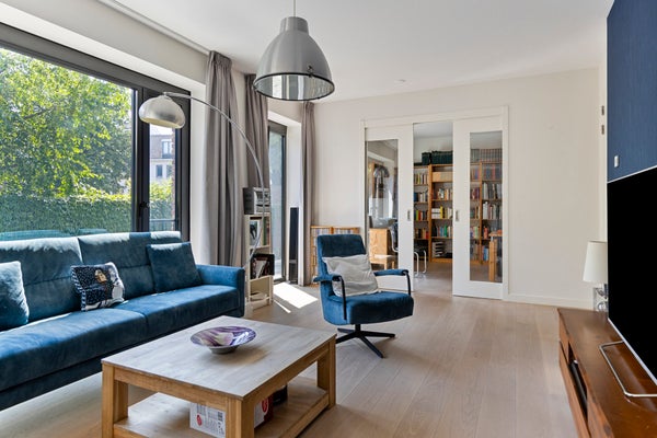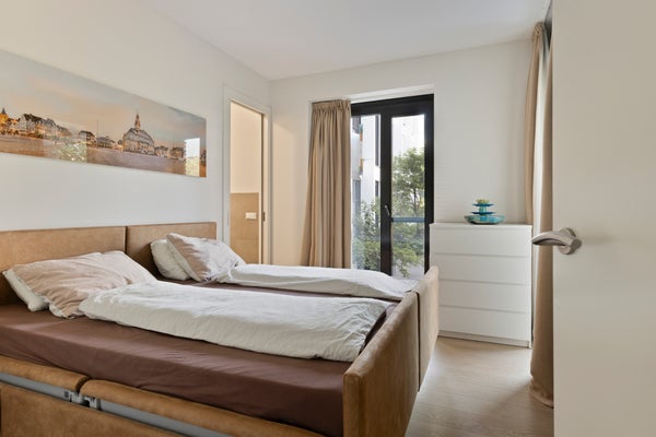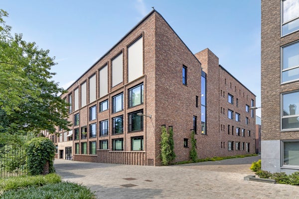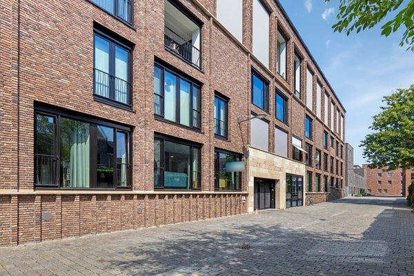 Dit unieke, moderne 2-slaapkamer appartement van 84 m² in Maastricht (Sphinx-Zuid) biedt een prachtig uitzicht op de historische Andrieskapel. Gelegen op de begane grond van het nieuwbouwcomplex 'Les Mouleurs', dat in 2020 is opgeleverd, geniet het appartement van een terras aan een parkachtige binnentuin. 'Les Mouleurs' heeft duurzame kenmerken zoals zonnepanelen en kwaliteitsisolatie en is ontworpen door Humblé Martens Willems binnen het Belvedèreplan. De indeling omvat een woonkamer van 33 m², een halfopen keuken met moderne apparatuur, een werkkamer en twee slaapkamers, waarvan één met een doucheruimte. Er is ook een interne berging, technische ruimte en een eigen parkeerplaats in een kelder met elektrische laadpunten.