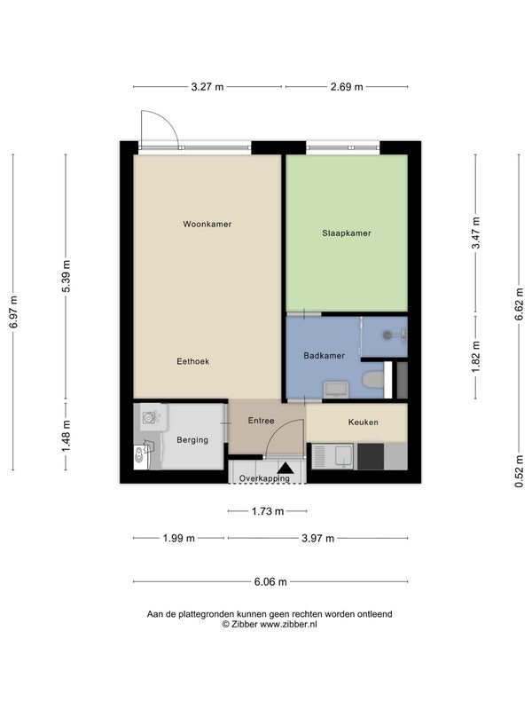 - De portiekflat heeft een woonoppervlakte van 42 m² en beschikt over 2 kamers, waarvan 1 slaapkamer;