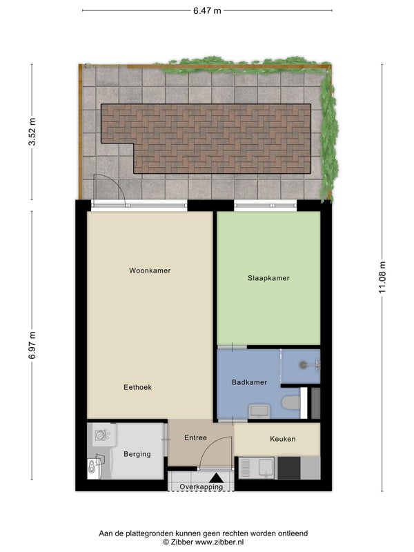 - Aanwezig (23 m², gelegen op het zuidoosten)