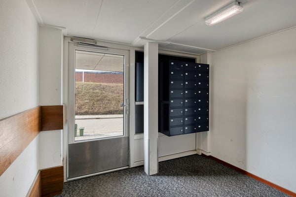 Gezamenlijke entree met bellentableau, brievenbussen en gezamenlijke fietsenstalling.