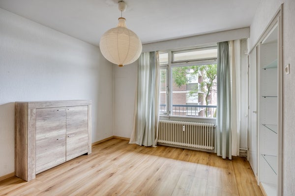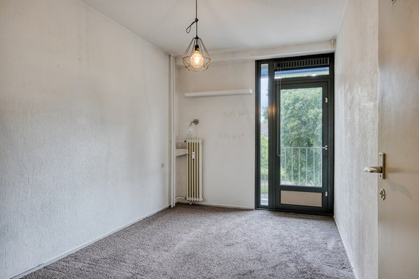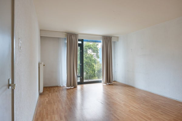 Via de ruime hal kom je in alle vertrekken van het appartement. De woonkamer is verdeeld in twee aparte kamers. De kamer (24m²) aan de achterkant is licht door de grote ramen en heeft een mooie laminaatvloer. Vanuit deze kamer loop je via een schuifpui zo het ruime balkon (9m²) op, met een fijn uitzicht over de binnenstad van Maastricht.