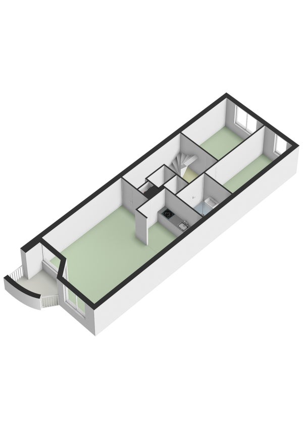 - De galerijflat heeft een woonoppervlakte van 102 m² en beschikt over 5 kamers, waarvan 3 slaapkamers;
