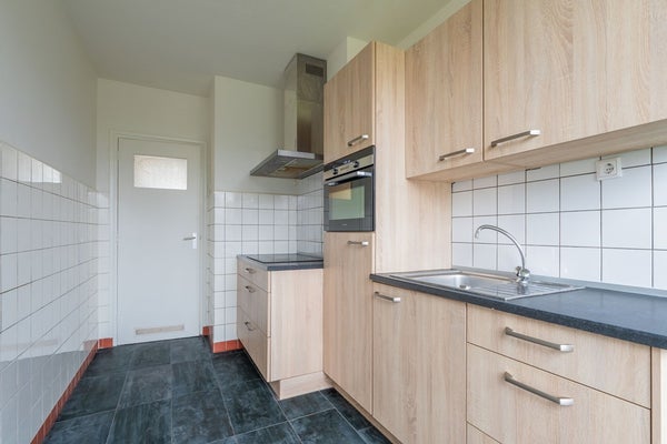 Aan de voorzijde kijk je uit over een aangrenzend plantsoen aan de Via Regia. Aan de achterzijde ligt het winkelcentrum Brusselse Poort, gescheiden door een straat, waardoor voorzieningen bijna letterlijk binnen handbereik zijn. Het balkon vormt een rustige plek om even naar buiten te stappen. In het souterrain is een ruime privéberging aanwezig voor fietsen en opslag. Doordat hier verwarmingsleidingen van bovenliggende appartementen lopen, is de temperatuur er doorgaans aangenaam. Daarnaast is de berging voorzien van verlichting.