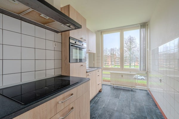 Op de derde verdieping van een kleinschalige portiekflat aan de Via Regia ligt dit verzorgde en direct te betrekken appartement. Het valt op door het vele licht en het prettige contact met buiten, waardoor het geheel meteen een rustige en vertrouwde sfeer heeft. De afwerking is deels gedateerd, maar de basis is goed onderhouden en degelijk: grotendeels dubbel glas, kunststof kozijnen aan de voorzijde en houten kozijnen aan de achterzijde, een logische indeling en ruime bijkeuken.