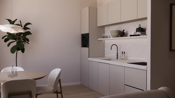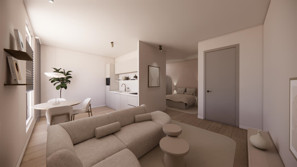 - De portiekflat heeft een woonoppervlakte van 47 m² en beschikt over 2 kamers, waarvan 1 slaapkamer;