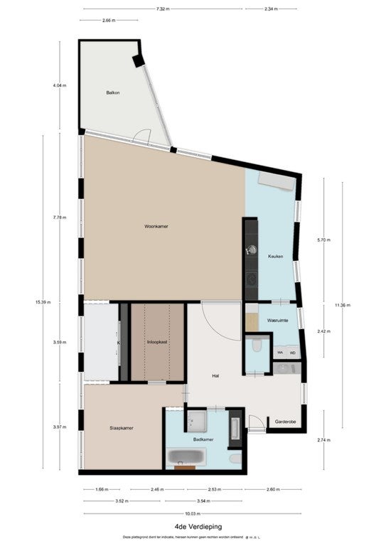 - Alle vermelde afmetingen zijn indicatief en kunnen afwijken van de werkelijkheid.