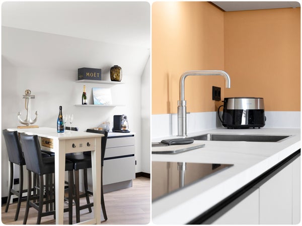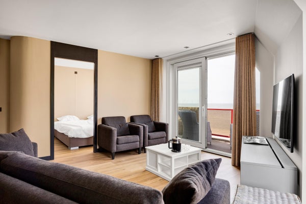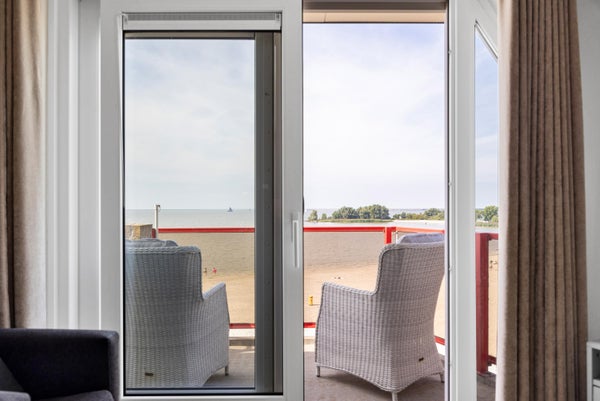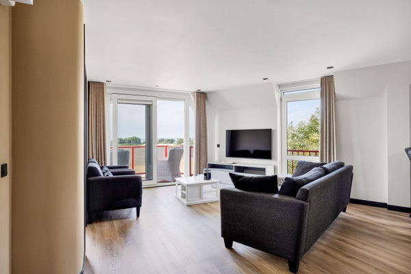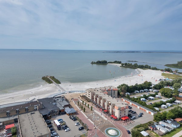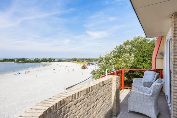 Op de bovenste woonlaag van een appartementcomplex bevindt zich dit volledig gemoderniseerde recreatie-appartement met een prachtig uitzicht over het IJsselmeer en het strand. Het biedt een dakterras op het westen, een luxe keuken met moderne inbouwapparatuur, een ruime woonkamer van ca. 32 m², en twee slaapkamers. De grote slaapkamer kijkt uit op het strand, terwijl de tweede slaapkamer een eigen balkon heeft. Met een woonoppervlakte van ca. 70 m² en een inhoud van ± 225 m³, is het appartement bereikbaar per lift. Er is ook een eigen berging in het souterrain voor fietsen en surfspullen. De woning ligt in Makkum, een levendig watersportdorp met alle nodige voorzieningen en is centraal gelegen nabij grote steden. Vergelijkbare recreatie-appartementen kunnen verhuurd worden, maar dat is niet verplicht.