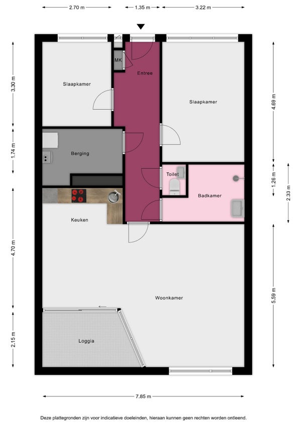 - De galerijflat heeft een woonoppervlakte van 92 m² en beschikt over 3 kamers, waarvan 2 slaapkamers;