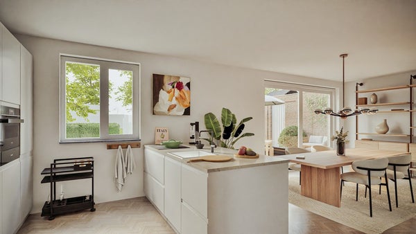 De karakteristieke elementen van het schoolgebouw blijven zorgvuldig behouden: de metselwerkbogen, het klokkentorentje en de authentieke raampartijen. Het voormalige schoolplein wordt een groen woonhofje waar bewoners elkaar ontmoeten. Met de kerk om de hoek en voorzieningen op loopafstand combineer je dorpse rust met alle gemakken binnen handbereik.