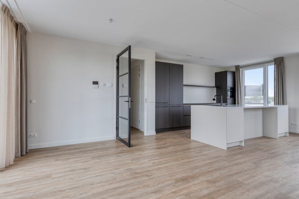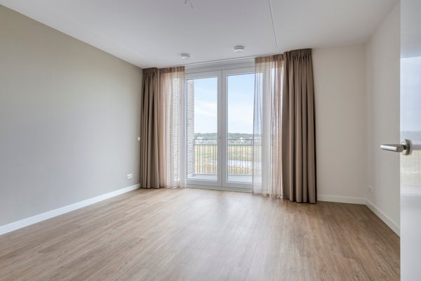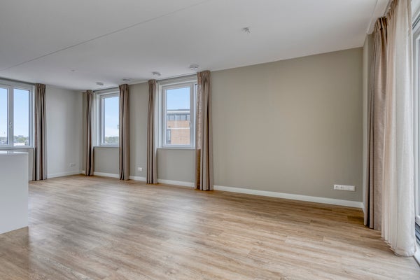 - De portiekflat heeft een woonoppervlakte van 105 m² en beschikt over 3 kamers, waarvan 2 slaapkamers;