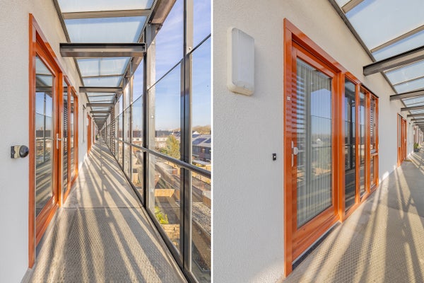 - De galerijflat heeft een woonoppervlakte van 75 m² en beschikt over 3 kamers, waarvan 2 slaapkamers;