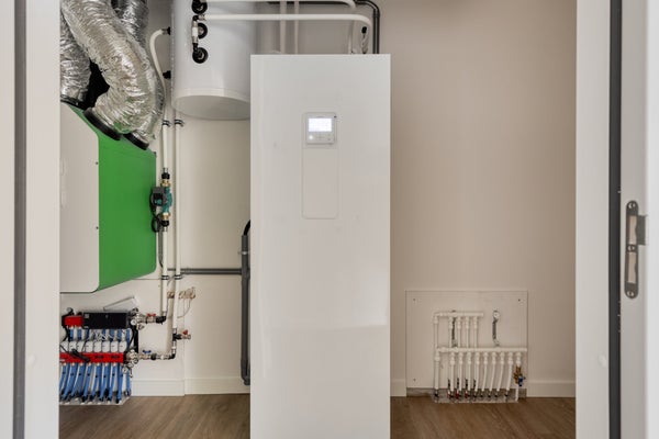 - Volledige vloerverwarming, Warmtepomp, Warmte terugwininstallatie