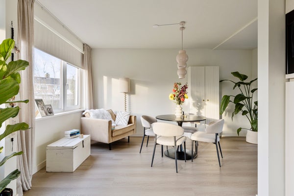 Dit appartement is in 2024 volledig gerenoveerd en instapklaar. Hier vind je vloerverwarming, een parketvloer, en een moderne keuken en badkamer. Gelegen in een populaire buurt, met winkels en voorzieningen dichtbij. Via de afgesloten entree bereik je het appartement op de eerste verdieping, wat privacy biedt. Bij binnenkomst kom je in de hal met een toilet, waarna de royale woonkamer van 33 m² volgt, met toegang tot het balkon aan de voorzijde. De open keuken is uitgerust met moderne apparatuur. De slaapkamer is groot genoeg voor een tweepersoonsbed en bergruimte. Bovendien zijn er twee balkons: één met uitzicht op de straat en één rustiger uitzicht op groen. Voorzien van dubbel glas en goede isolatie. Maandelijkse VVE bijdrage is € 303,-.