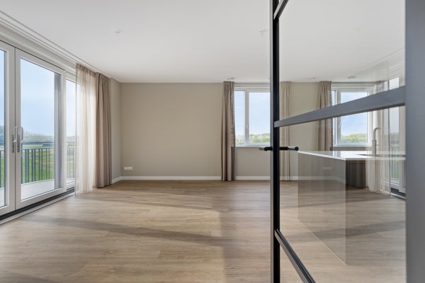 - De portiekflat heeft een woonoppervlakte van 103 m² en beschikt over 3 kamers, waarvan 2 slaapkamers;