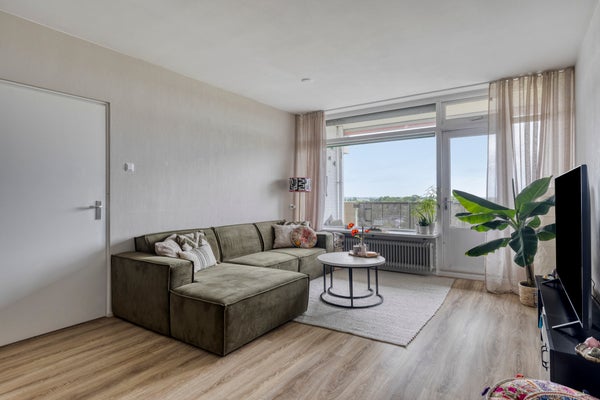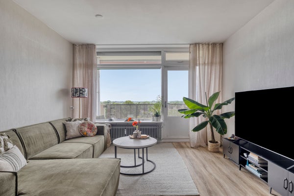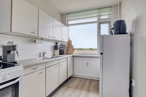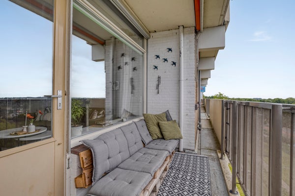 Dit goed onderhouden appartement met 2 slaapkamers is gelegen op de 6e verdieping van De Middelburcht en biedt een mooi uitzicht op het park en de duinen. Gevestigd in de geliefde woonwijk Griffioen, met winkels en openbaar vervoer in de nabijheid. De begane grond heeft een afgesloten entree met intercom, hal met toegang tot de lift en een inpandige berging. Op de zesde verdieping bevinden zich een hal, een dichte keuken, een ruime woonkamer van 25 m2 met toegang tot de loggia, 2 slaapkamers van 11 en 14 m2, en een nette badkamer met douche en wasmachine-aansluiting. Op de achtste verdieping is een recreatiezaal met bar, biljart en fitnessruimte. De maandelijkse VVE-bijdrage is € 447,40 met warmtevorschot van € 102,50. Er is een mogelijkheid om een garage te huren.