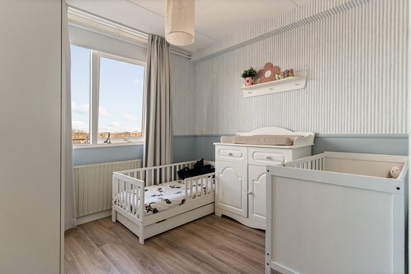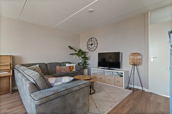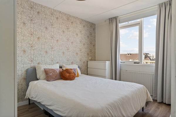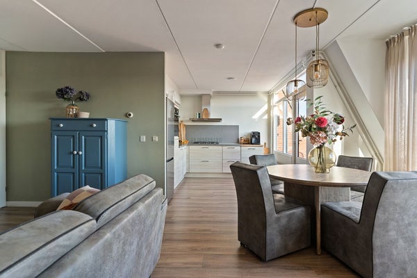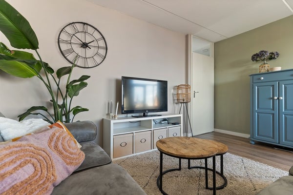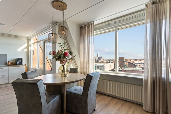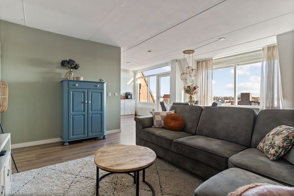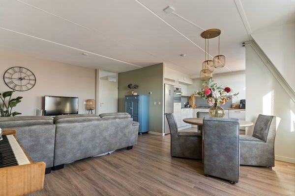 De ruime woonkamer vormt het hart van de woning. Dankzij de open keuken oogt de ruimte extra licht en ruimtelijk. De keuken is praktisch ingericht en voorzien van een gasfornuis en een combi-oven, waardoor je hier direct aan de slag kunt. Vanuit de keuken heb je toegang tot het royale balkon gelegen op het zonnige zuidoosten, een heerlijke plek om buiten te zitten en te genieten van de frisse lucht.