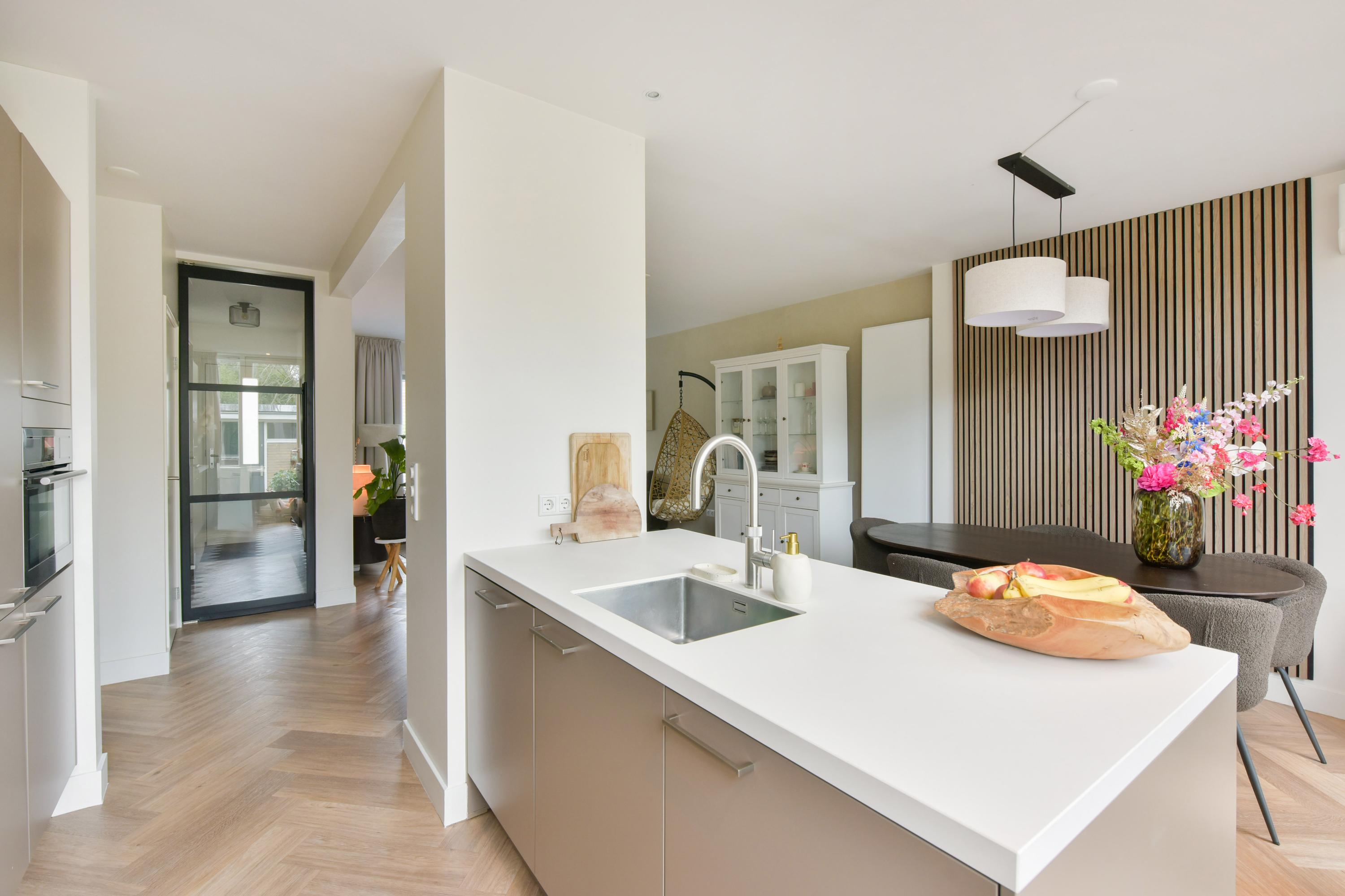 Deze royale en moderne tussenwoning in Naarden biedt met drie slaapkamers en een zonnige voortuin de ideale combinatie van comfort en stijl. De woning is gelegen in een rustiger straat met voldoende parkeergelegenheid en maakt deel uit van een kindvriendelijke buurt. De stijlvolle afwerking, met onder andere een visgraatvloer, en het onderhoud zijn van hoog niveau. De moderne keuken is van 2021 en beschikt over een spoeleiland en ingebouwde apparaten. Met 13 zonnepanelen en HR++ beglazing geniet u van energiezuinig wonen. Op de eerste verdieping bevinden zich twee ruime slaapkamers en een luxe badkamer. De zolder is onlangs gerenoveerd en biedt nu een lichte slaapkamer met airco. De achtertuin is verzorgd en heeft een praktische berging. Winkels en scholen zijn dichtbij, net als natuurgebieden.