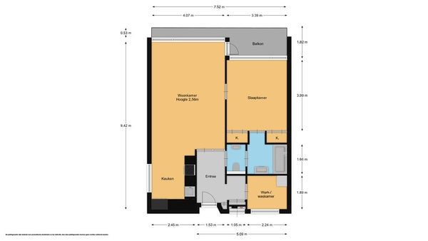 - De galerijflat heeft een woonoppervlakte van 68 m² en beschikt over 3 kamers, waarvan 2 slaapkamers;