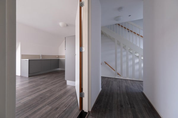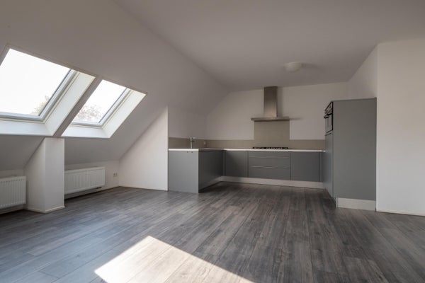 Dit verrassend ruime en lichte appartement is modern en instapklaar, met een Energielabel B. Op de begane grond is er een gezamenlijke entree voor drie appartementen, waarna je via je eigen voordeur en een trap naar boven het appartement binnenkomt. De ruime overloop met daglicht leidt naar het woongedeelte, een slaapkamer en de moderne badkamer. Het woongedeelte met een woonkamer-keuken van circa 33 m² bevat een Bruynzeel keuken met diverse inbouwapparatuur. De ruime slaapkamer van meer dan 11 m² en de moderne badkamer met douche, wastafel en toilet maken het compleet. De verdieping, bereikbaar via een vaste trap, is een open ruimte die geschikt is voor een extra slaapkamer. Het appartement is voorzien van een moderne laminaatvloer. Bouwjaar is ****** en maandelijkse bijdrage aan de VvE is circa € 175,-.