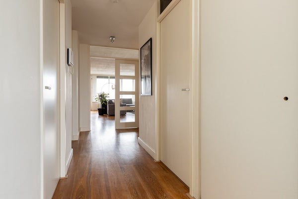 Bij binnenkomst betreedt u de entree met een royale hal die direct een gevoel van ruimte geeft. Vanuit deze centrale hal heeft u toegang tot twee ruime slaapkamers, beide gelegen aan de voorzijde van het appartement. Daarnaast bereikt u hier de badkamer, de separate toiletruimte en een praktische wasruimte.
