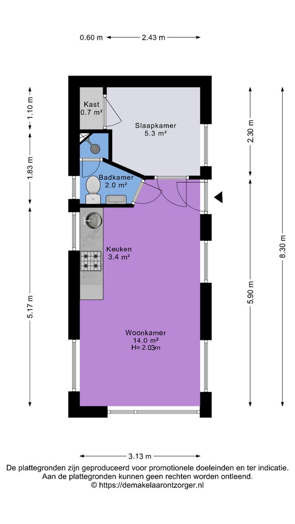 - De galerijflat heeft een woonoppervlakte van 103 m² en beschikt over 4 kamers, waarvan 2 slaapkamers;