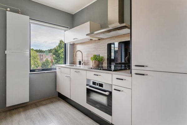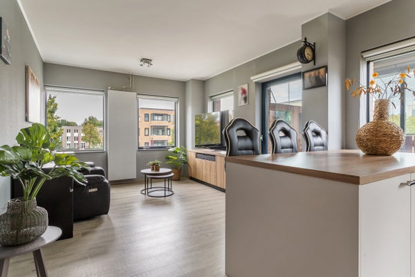 - De portiekflat heeft een woonoppervlakte van 54 m² en beschikt over 2 kamers, waarvan 1 slaapkamer;