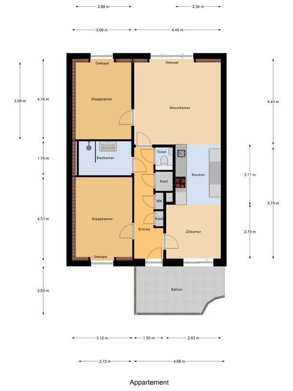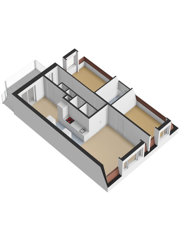 - De galerijflat heeft een woonoppervlakte van 77 m² en beschikt over 3 kamers, waarvan 2 slaapkamers;
