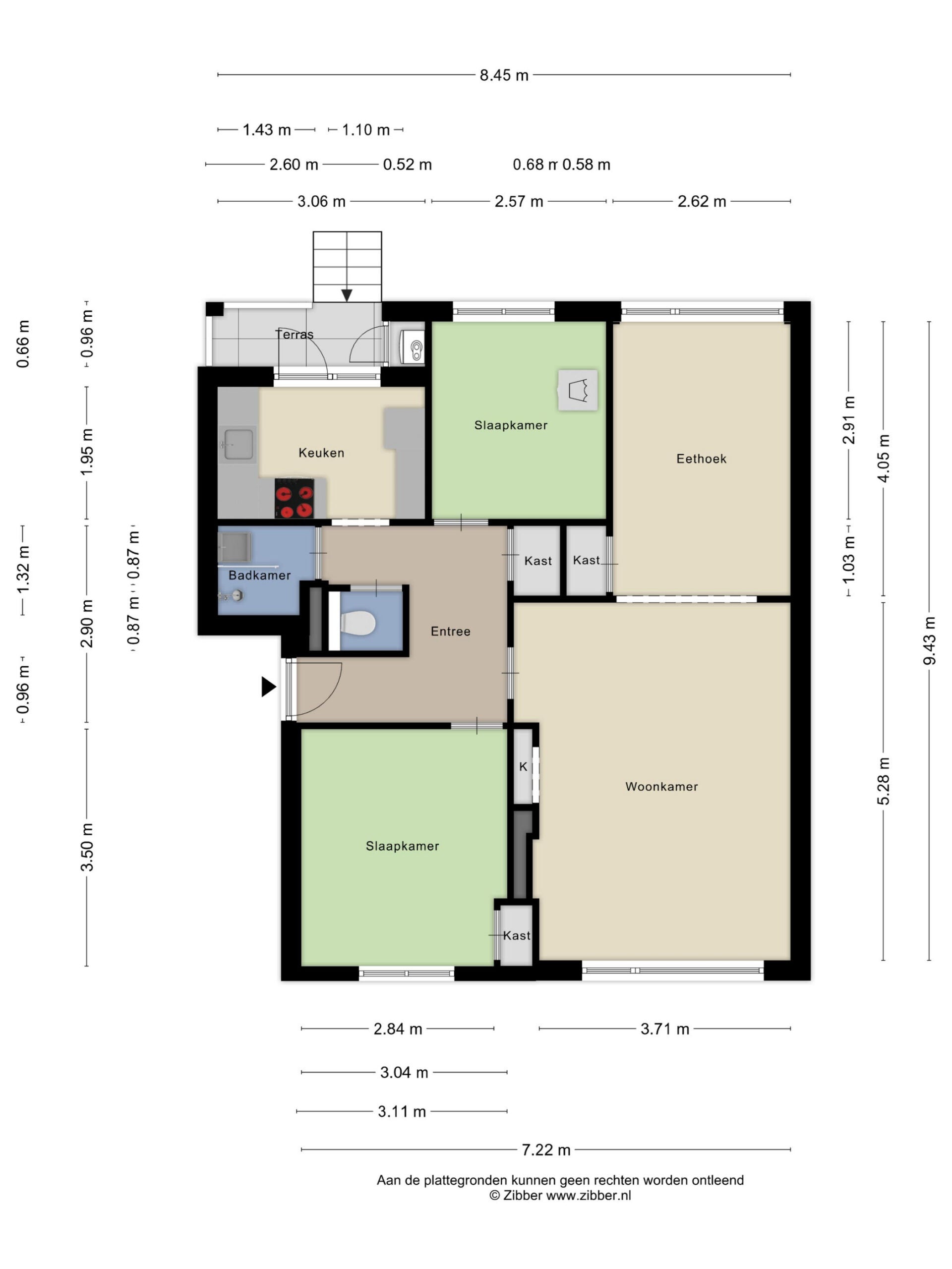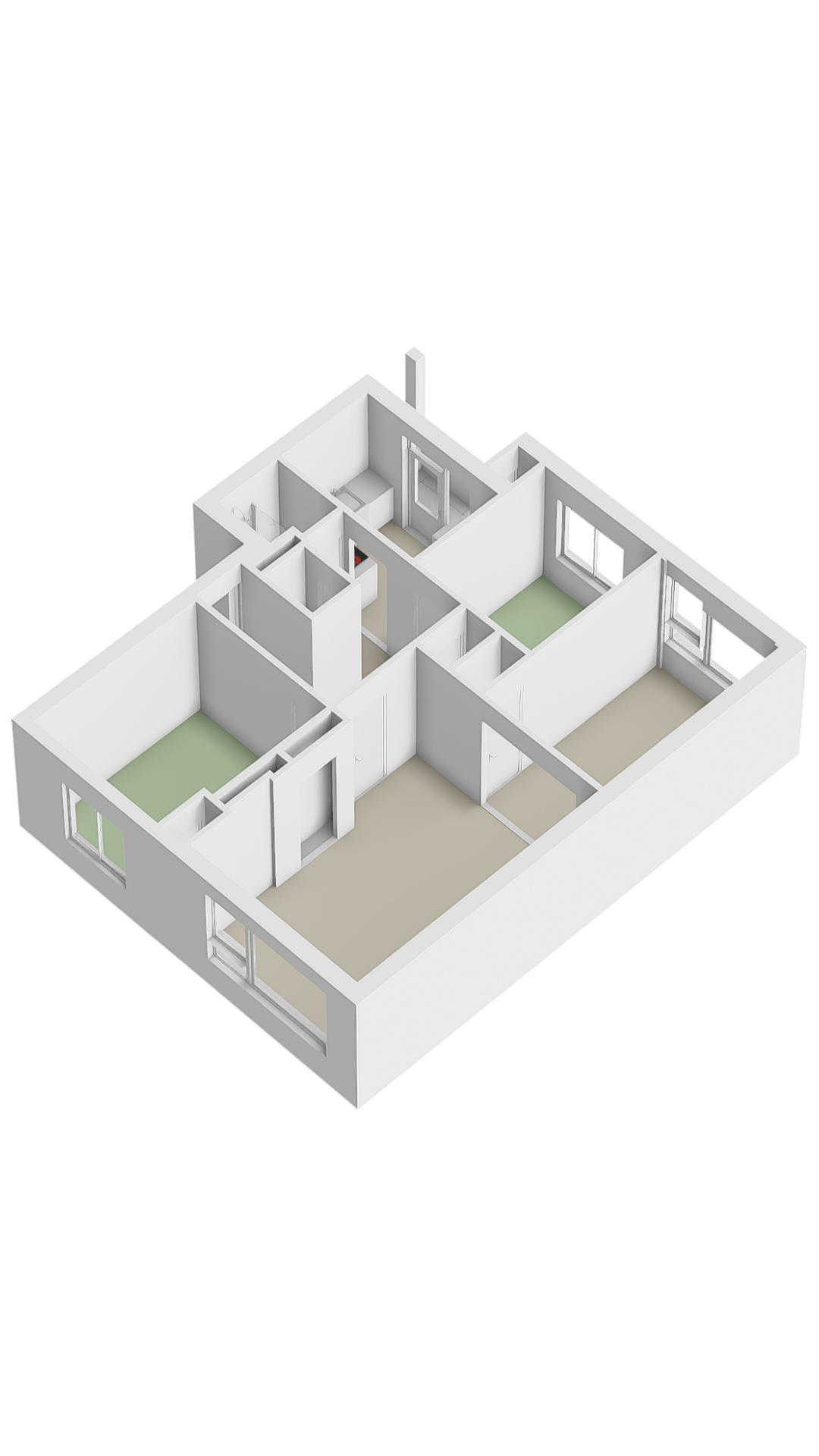 - De galerijflat heeft een woonoppervlakte van 70 m² en beschikt over 3 kamers, waarvan 2 slaapkamers;