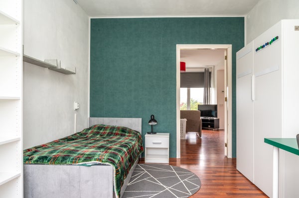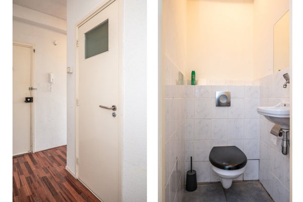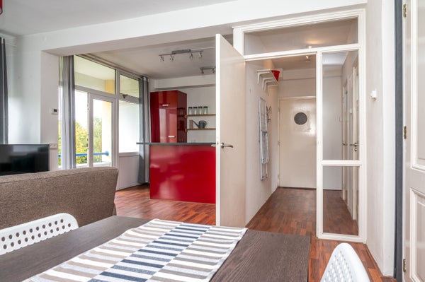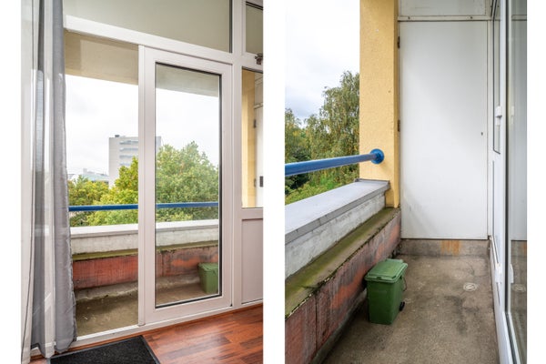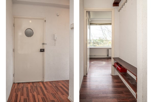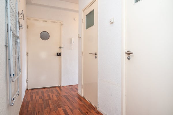 - De portiekflat heeft een woonoppervlakte van 64 m² en beschikt over 3 kamers, waarvan 2 slaapkamers;