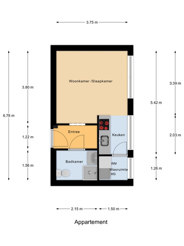 - De galerijflat heeft een woonoppervlakte van 26 m² en beschikt over 1 kamer;