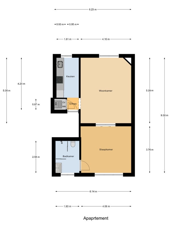 - De galerijflat heeft een woonoppervlakte van 52 m² en beschikt over 2 kamers, waarvan 1 slaapkamer;