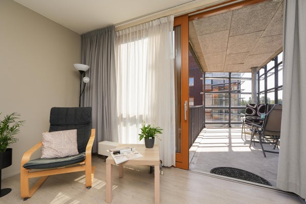 - De galerijflat heeft een woonoppervlakte van 94 m² en beschikt over 3 kamers, waarvan 2 slaapkamers;