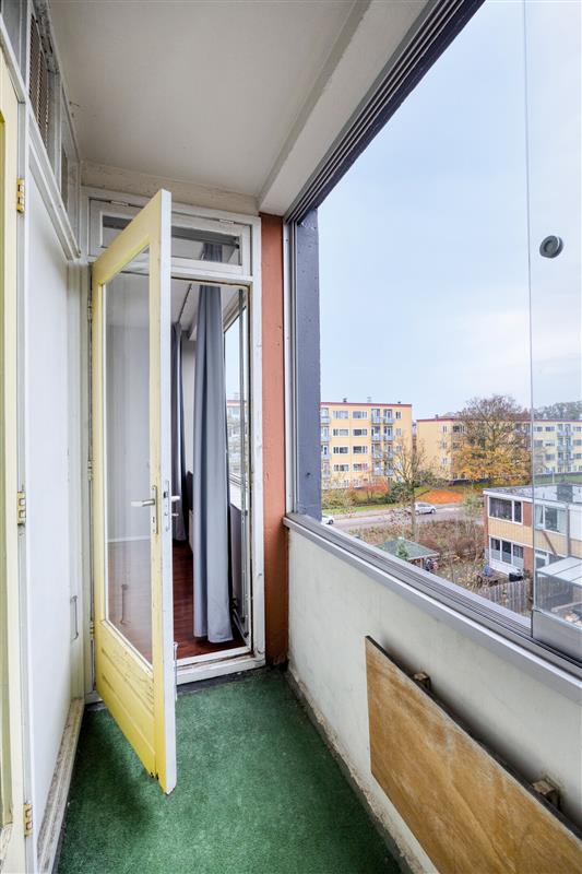 - De portiekflat heeft een woonoppervlakte van 61 m² en beschikt over 3 kamers, waarvan 2 slaapkamers;
