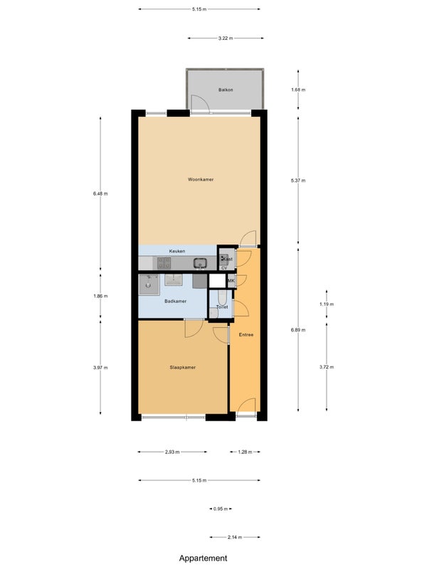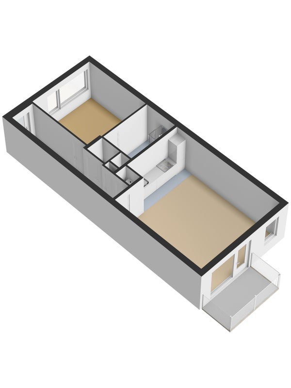 - De galerijflat heeft een woonoppervlakte van 64 m² en beschikt over 2 kamers, waarvan 1 slaapkamer;