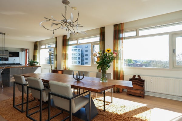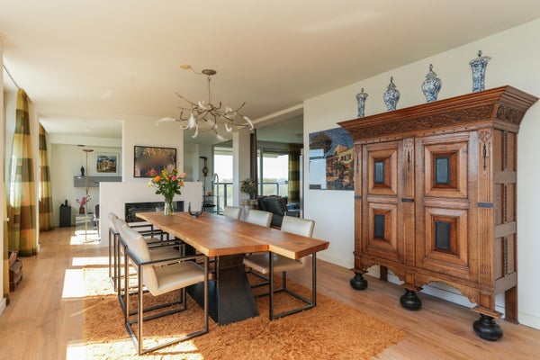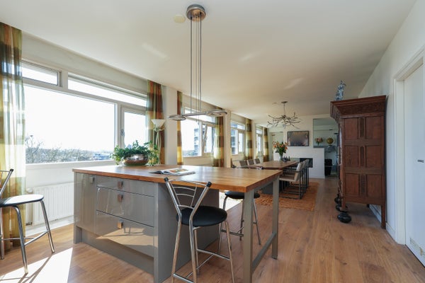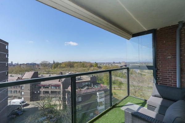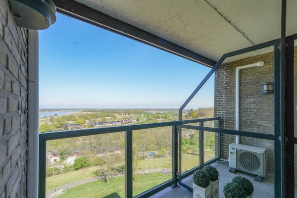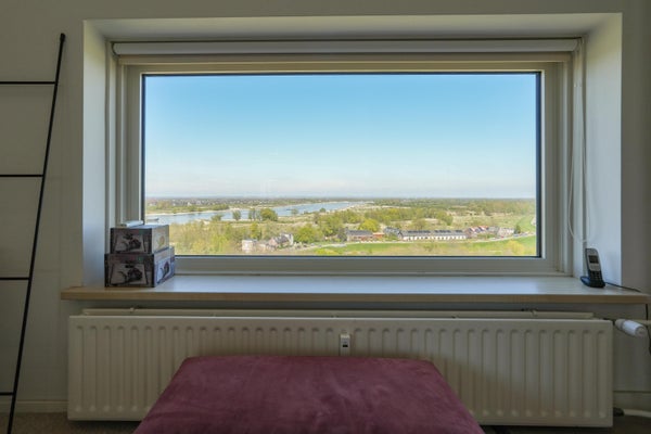 Dit unieke appartement biedt een panoramisch uitzicht over de Waal, de Ooijpolder en de skyline van Nijmegen. Gelegen op de zesde verdieping van een verzorgd complex in Nijmegen-Oost, combineert het ruimte met een uitstekende locatie. Het appartement, ontstaan uit de samenvoeging van twee woningen in 2009, heeft een woonoppervlak van 226 m² en is luxe gerenoveerd. Met drie ruime slaapkamers, twee badkamers, en een open keuken die leidt naar een zonnig balkon, is de indeling praktisch en doordacht. De master bedroom beschikt over een eigen badkamer en inloopkast. De gemeenschappelijke entree, lift en fietsenberging bieden extra gemak. Het appartement heeft ook een privé garage en is goed bereikbaar, met vrijwel alle voorzieningen op loopafstand. Voorzien van airconditioning en een modern intercomsysteem, biedt dit appartement een comfortabele en unieke woonervaring.