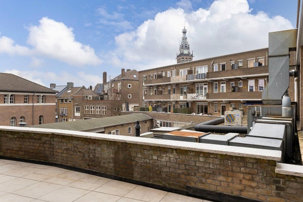 In het stadscentrum, in een keurig gebouw aan de zijde van de Doddendaal, gelegen 3-kamer appartement met ruim dakterras (30 m²) aan het rustige binnenterrein en gemeenschappelijke inpandige fietsenberging.