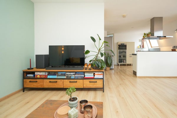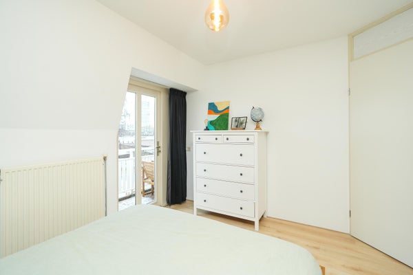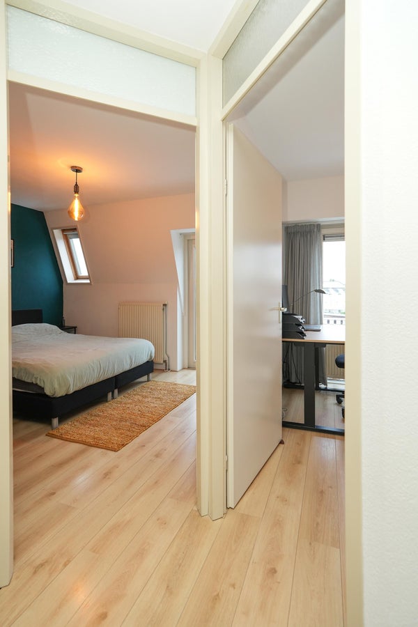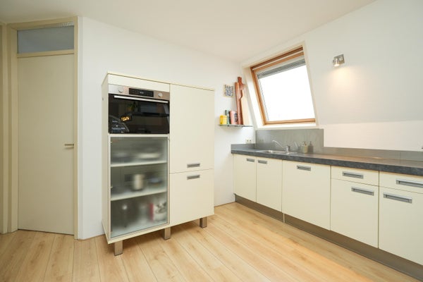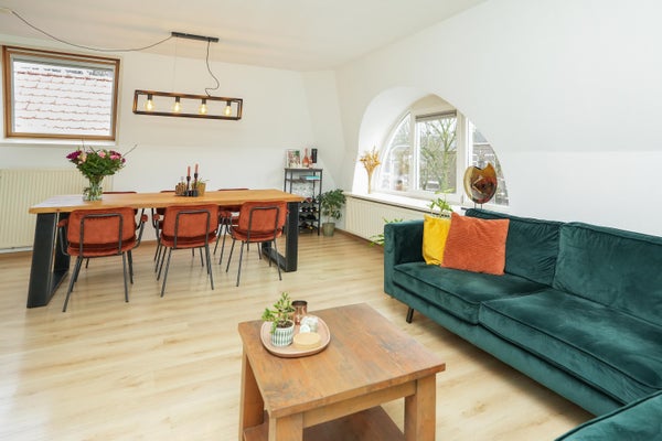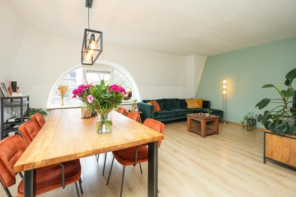 Dit goed onderhouden en sfeervolle driekamer hoekappartement met balkon en eigen garage bevindt zich aan een karakteristieke laan in Nijmegen, op loopafstand van het centrum en nabij diverse voorzieningen en restaurants. Het appartement, gelegen op de bovenste verdieping, biedt een hal die toegang geeft tot een toiletruimte en een praktische berging. De lichte woonkamer, door een dakkapel speels ingedeeld, biedt ruimte voor een eettafel. De half open keuken is uitgerust met moderne apparaten. Beide slaapkamers geven toegang tot het balkon, waarvan één met een kastenwand. De lichte badkamer bevat een lig-/zitbad en douche. Daarachter bevindt zich de garage met elektriciteit. Met een woonoppervlakte van ca. 73 m², een inhoud van 245 m³ en energielabel A, is dit appartement een aantrekkelijke keuze.