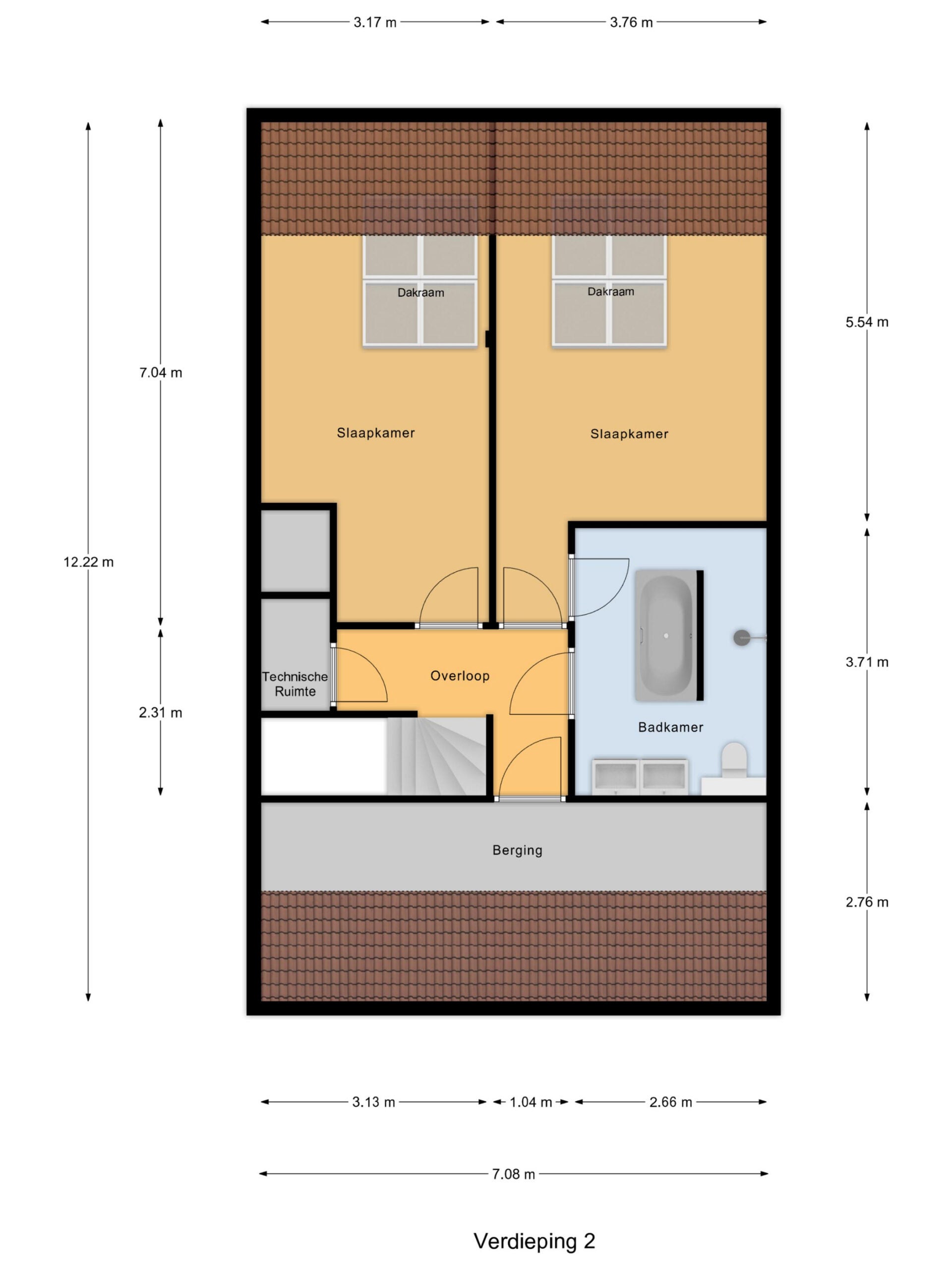 - De galerijflat heeft een woonoppervlakte van 154 m² en beschikt over 3 kamers, waarvan 2 slaapkamers;