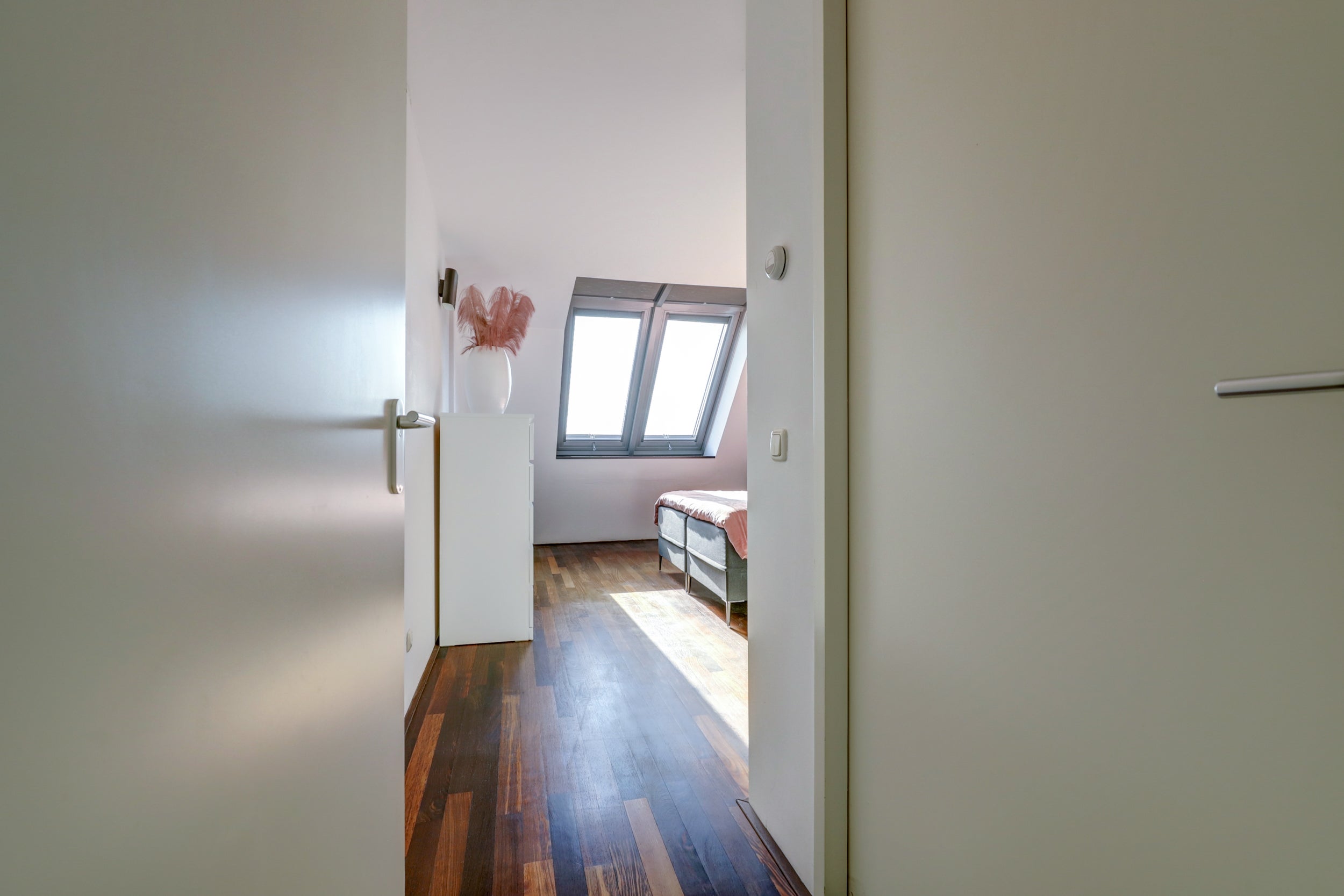Castellastraat 24 in Nijmegen biedt een luxe en ruime maisonnette van ca. 154 m², gelegen op de vijfde en zesde verdieping van een architectonisch bekroond complex. Met een prachtig uitzicht en twee privéparkeerplaatsen is dit een ideale woning voor stadsbewoners. Op de eerste verdieping vind je een lichte woonkamer met een schuifpui naar het zonnige terras, een open woonkeuken met hoogwaardige Miele apparatuur en een luxe uitstraling. De tweede verdieping beschikt over twee ruime slaapkamers en een vernieuwde badkamer met ligbad, inloopdouche en vloerverwarming. Deze woning, gelegen in het historische centrum nabij winkels en natuur, combineert stadsleven met comfort. De maandelijkse VvE-bijdrage bedraagt € 439,14.