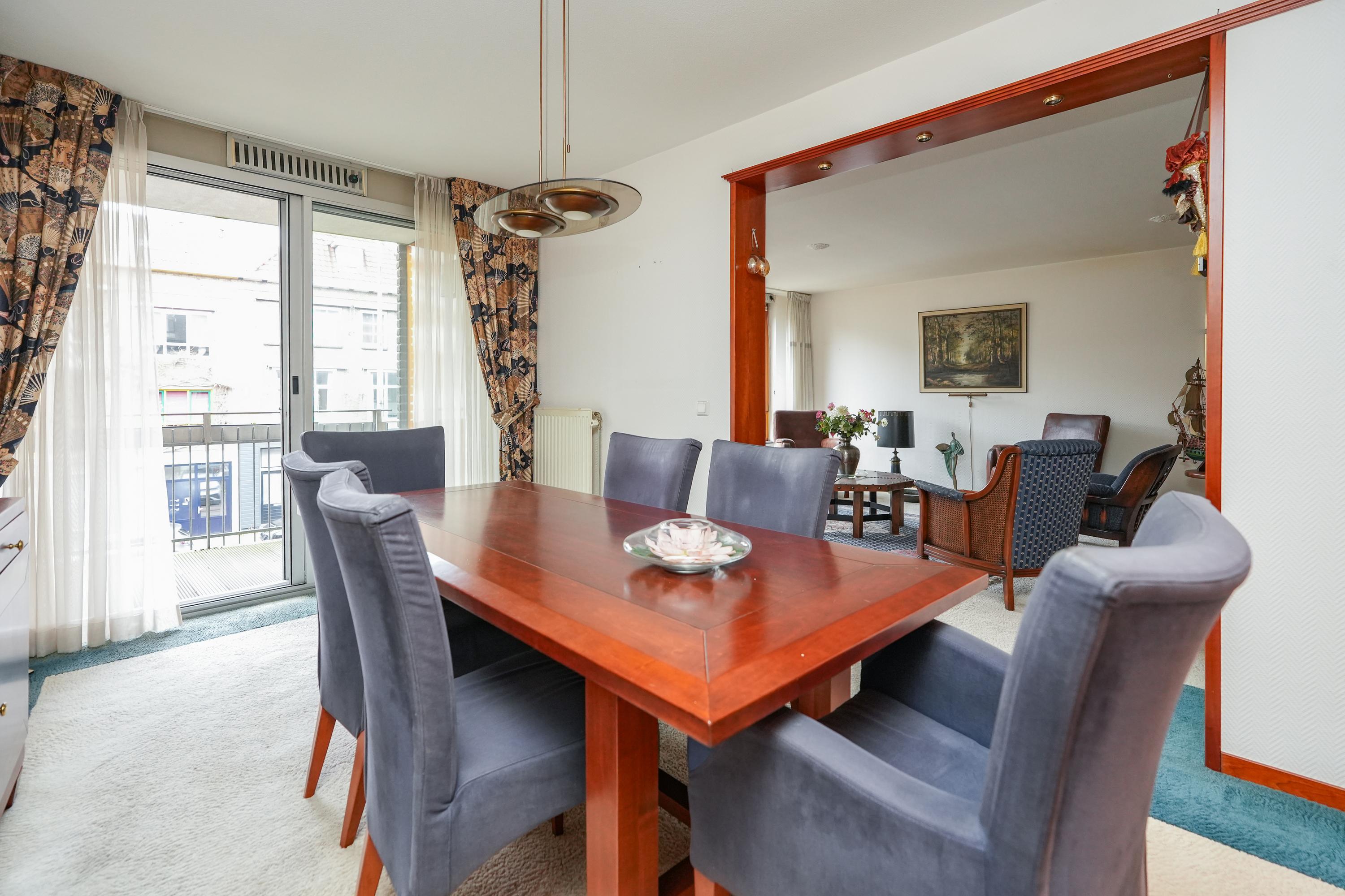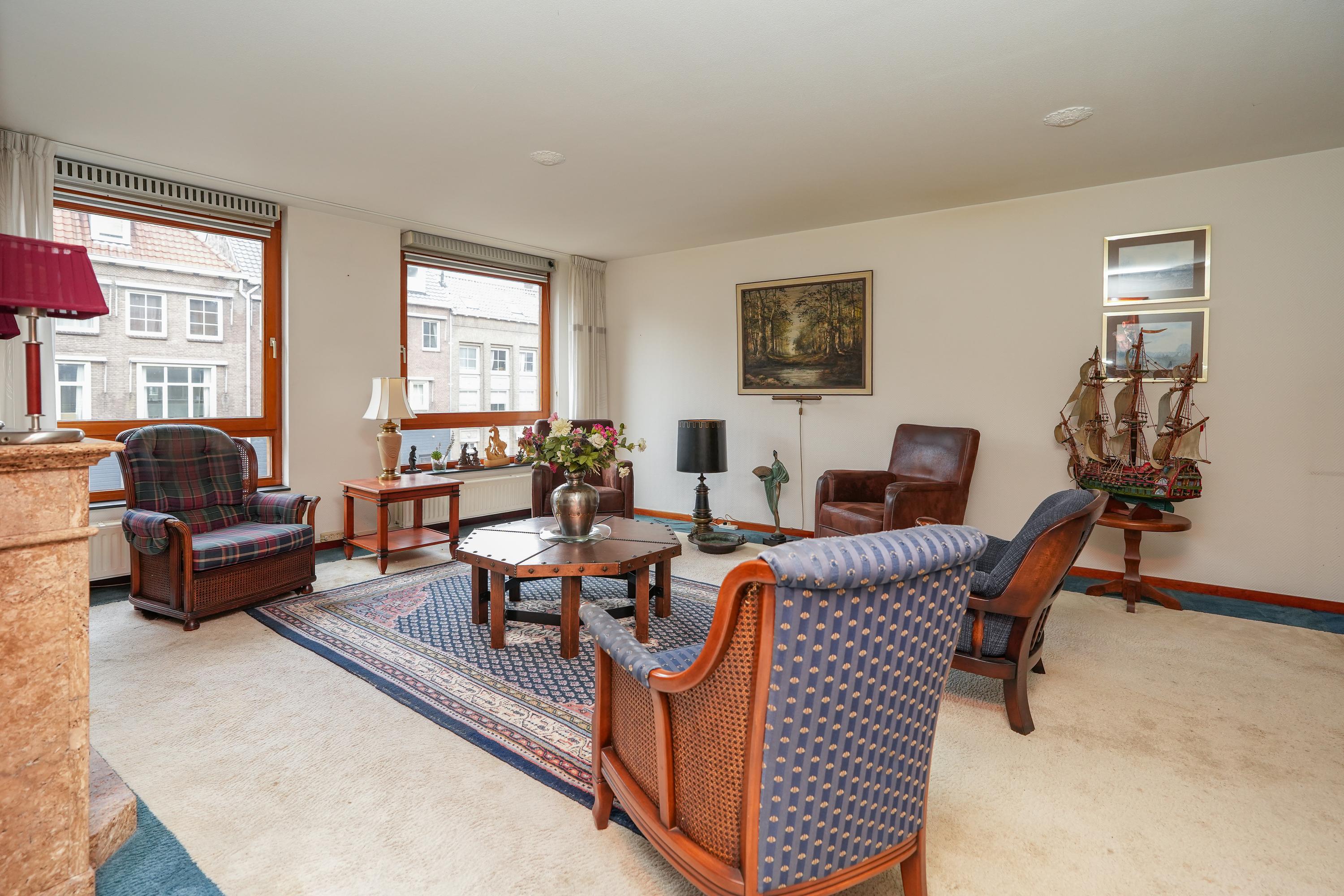Dit appartement ligt in een uniek complex, met een schitterende gemeenschappelijke binnentuin. Het is een drie-kamer appartement, voorheen vier kamers, dat gebouwd is onder architectuur van Dick van Gameren en Bjarne Mastenbroek. De woning heeft een ruime woonkamer met een open keuken en twee slaapkamers. Het balkon biedt uitzicht op historische panden en ligt op het noordwesten. Het appartement van ongeveer 104 m² is goed geïsoleerd en beschikt over een lift, berging en een parkeerplaats op het dak. De locatie is ideaal, midden in het centrum maar op een rustige plek, met voorzieningen en recreatiegebieden op loopafstand. De actieve VVE heeft een maandbijdrage van ca. € 304,00.