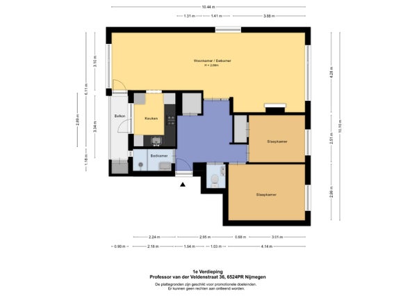 - De portiekflat heeft een woonoppervlakte van 85 m² en beschikt over 3 kamers, waarvan 2 slaapkamers;