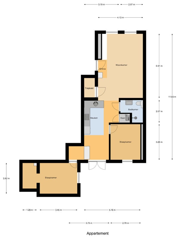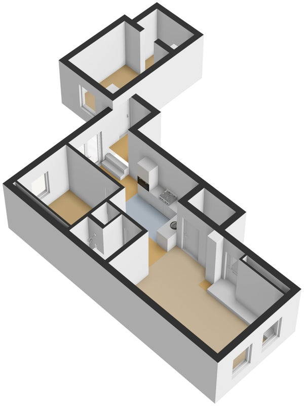 - De galerijflat heeft een woonoppervlakte van 69 m² en beschikt over 3 kamers, waarvan 2 slaapkamers;