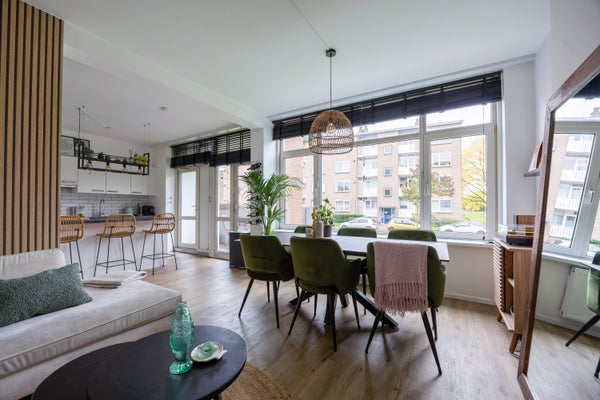 - De portiekflat heeft een woonoppervlakte van 62 m² en beschikt over 3 kamers, waarvan 2 slaapkamers;